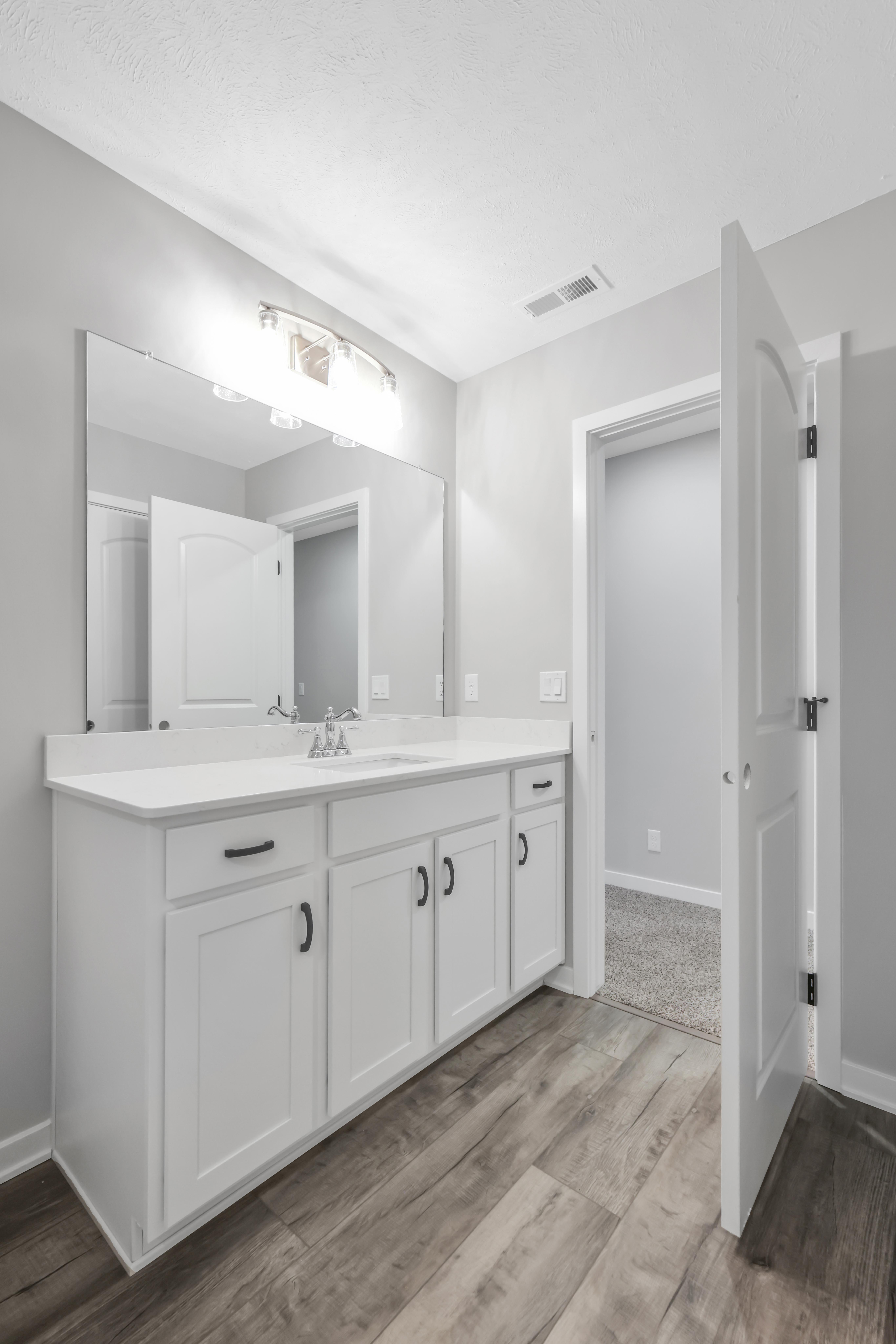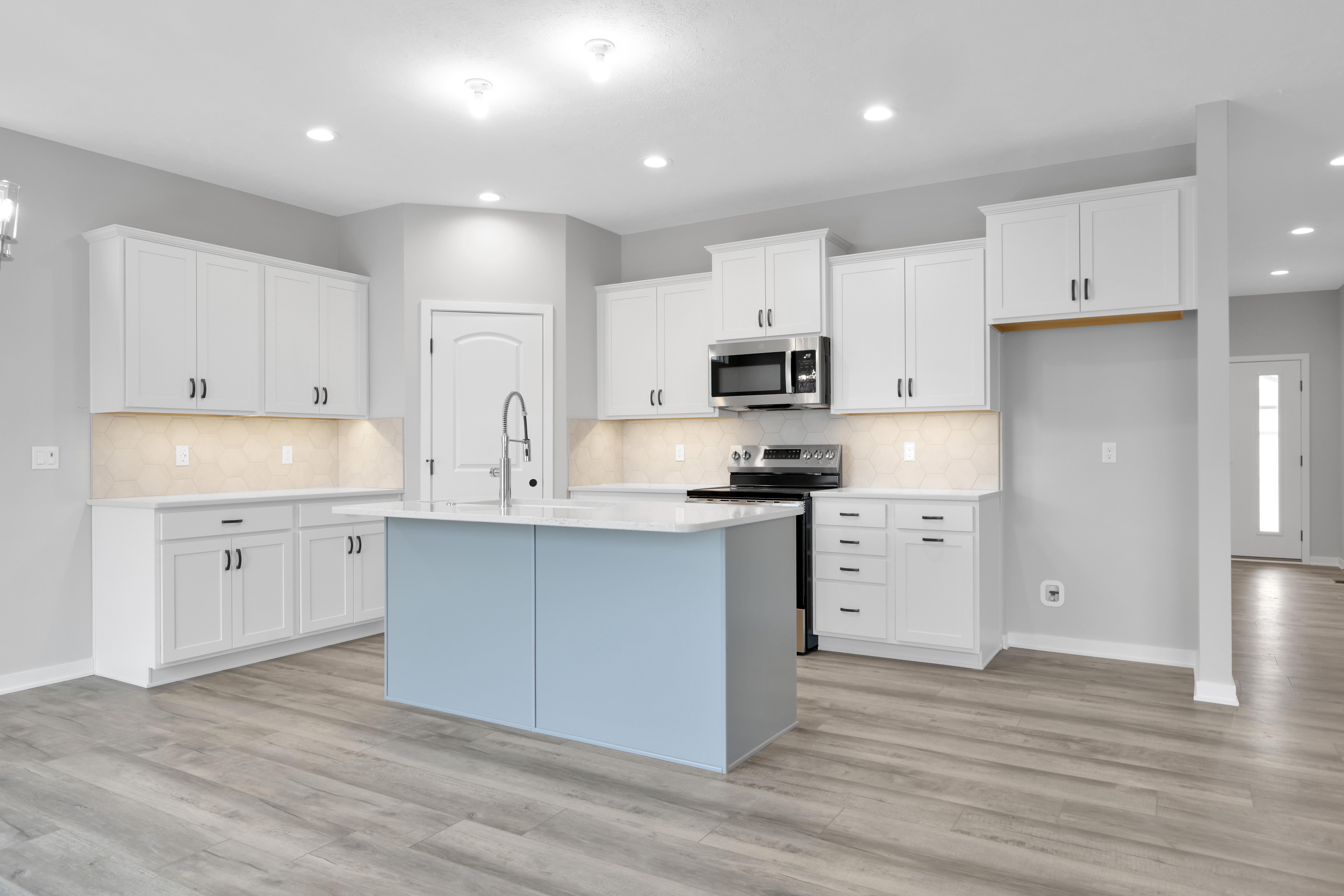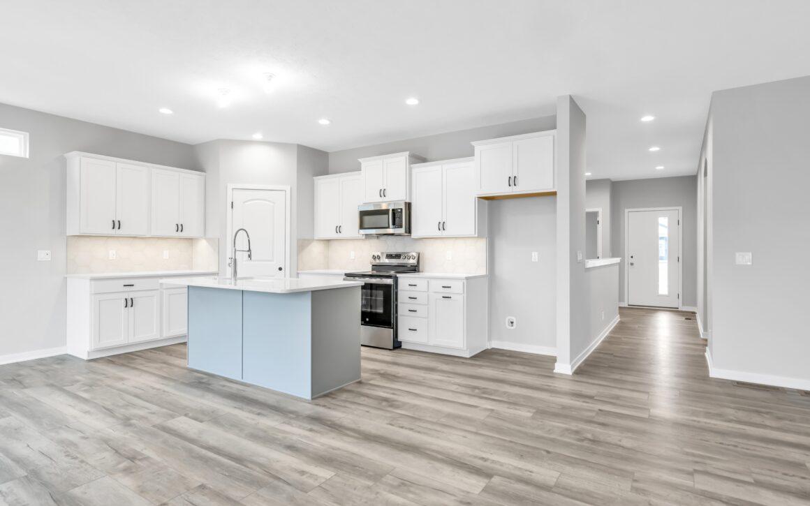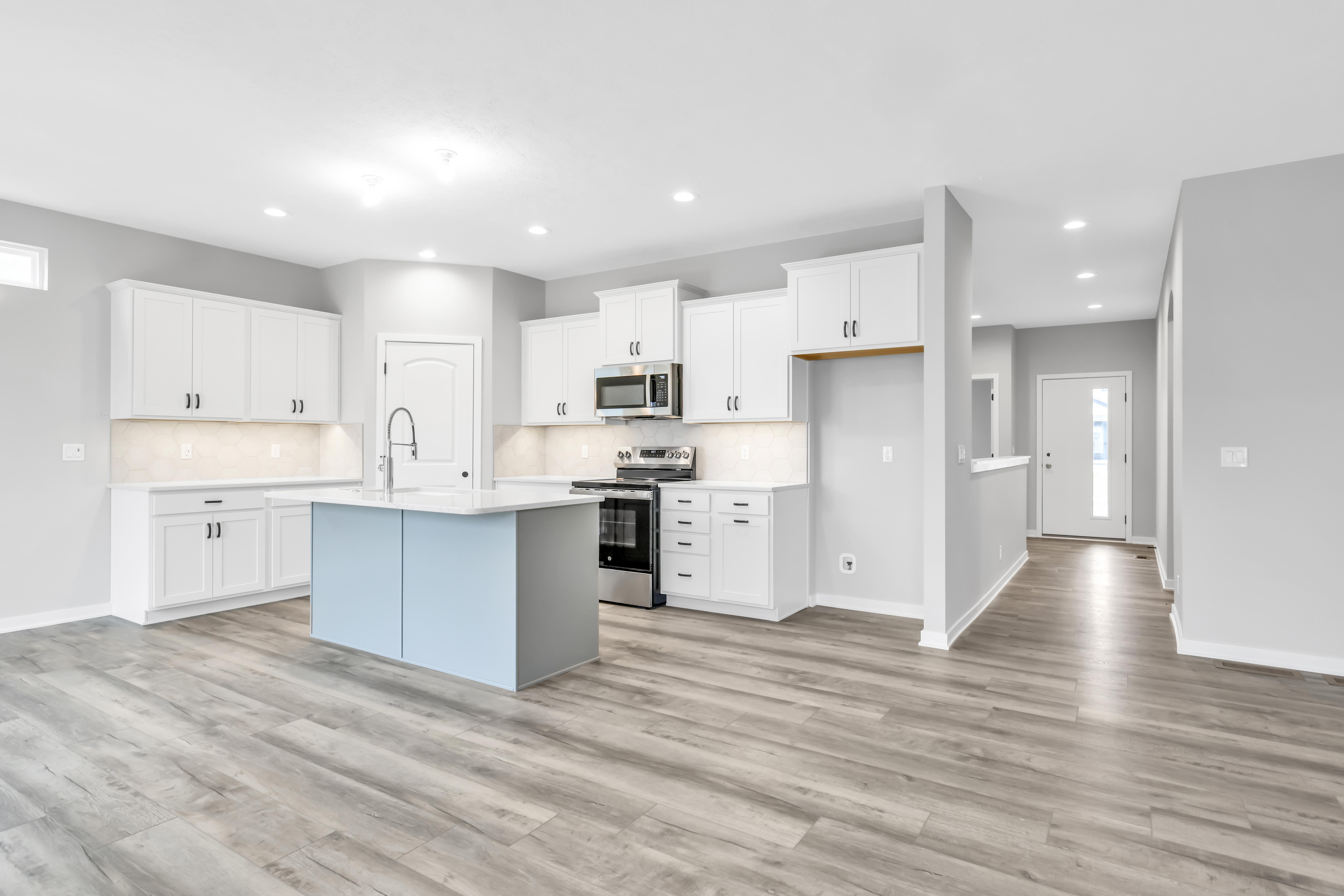 Open Living Space: Continue down the hall to discover the heart of the home—an expansive kitchen that seamlessly opens up to a spacious living area.