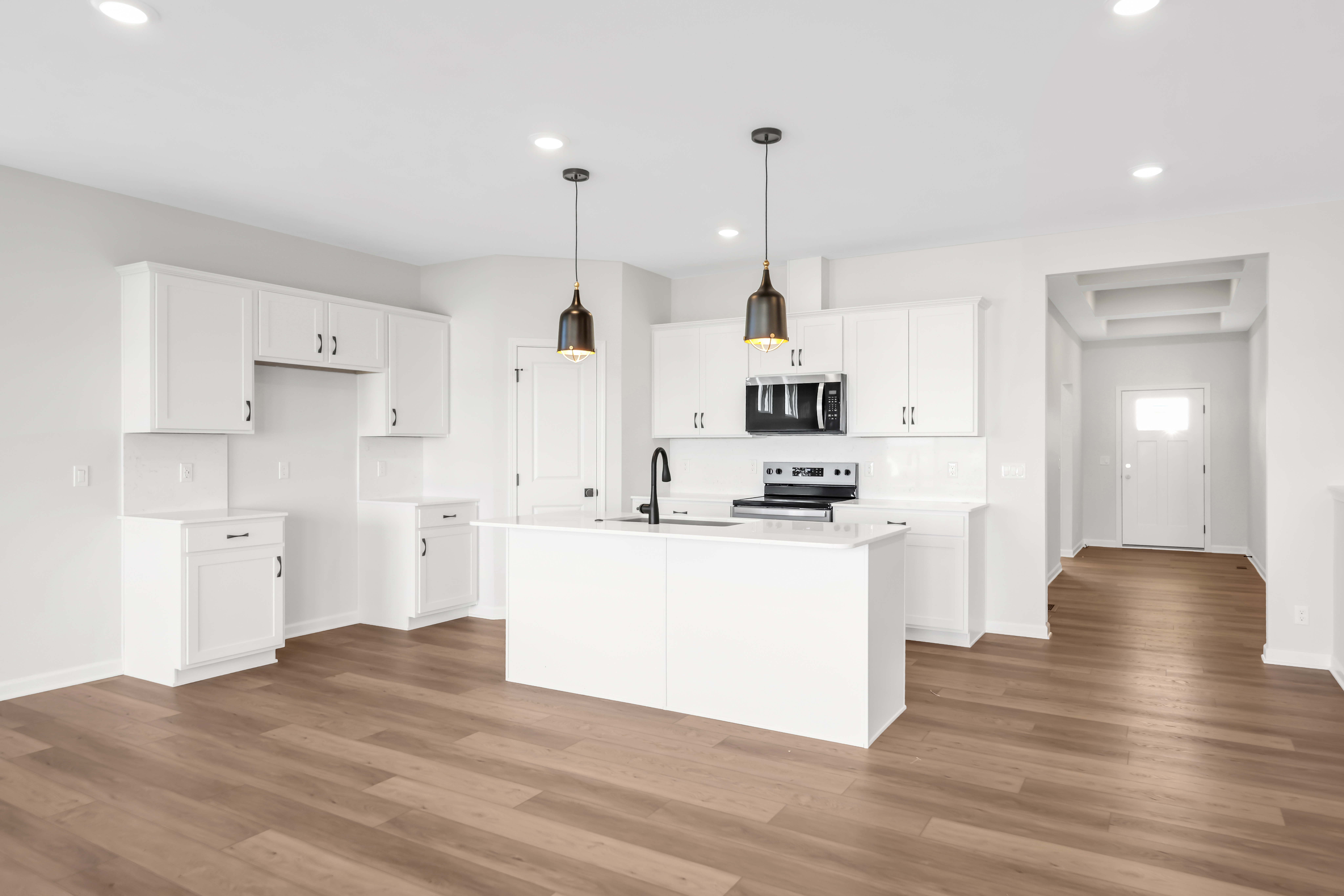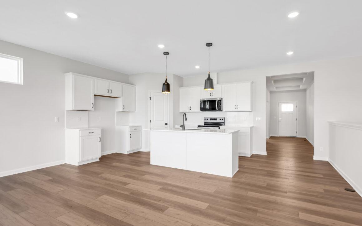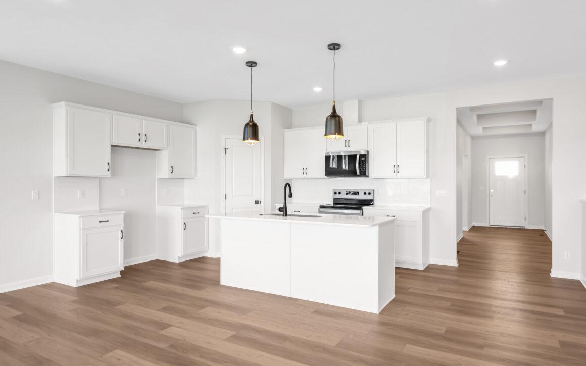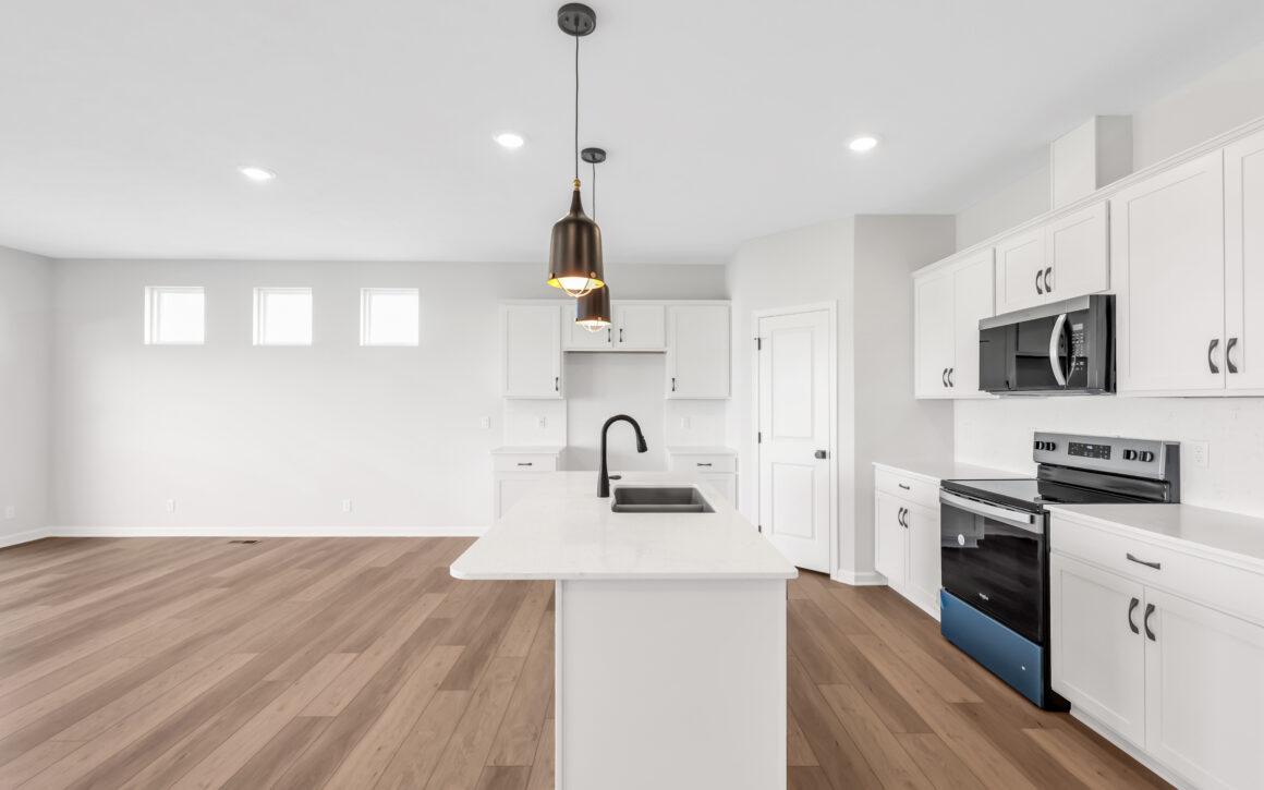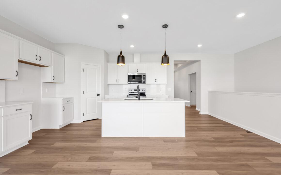 At the heart of the home, the open kitchen, dining, and great room create a seamless space for everyday living and entertaining alike.
