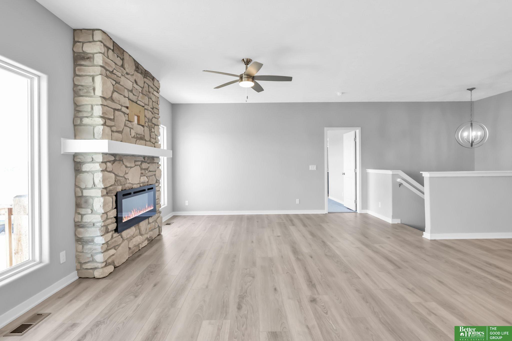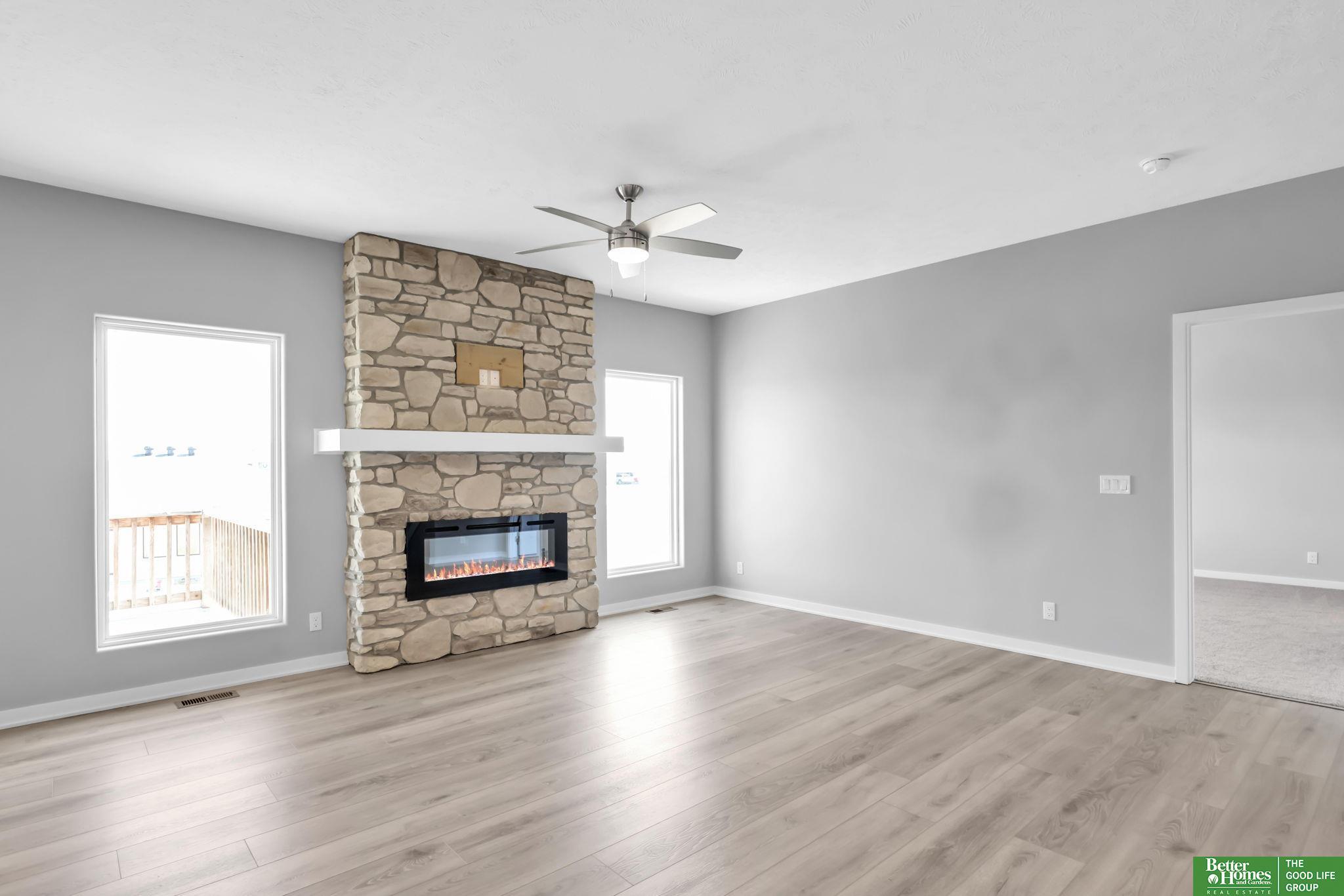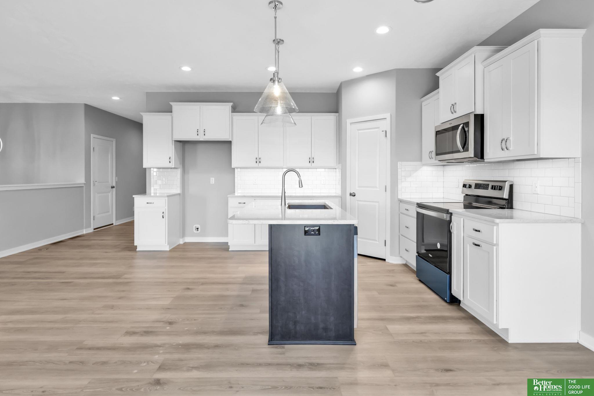 Discover this impressive 5-bedroom walkout ranch in Kempten Creek in Bennington. The open main level features quartz countertops, under cabinet lighting, and stylish fixtures that bring a clean, modern feel to the kitchen and living spaces. A stone fireplace creates a warm focal point in the living room, while the layout offers both comfort and function. Step outside to a covered cedar deck, a great spot to relax or host guests. The home includes 8 ft garage doors, and a spacious garage. Gas rough ins on the patio and in the kitchen offer flexibility for future upgrades. The walkout lower level includes a basement bar rough in and plenty of room for entertaining, hobbies, or additional living space. With five bedrooms and thoughtful details throughout, this home offers the space, style, and features many buyers are searching for in a well planned Bennington neighborhood.