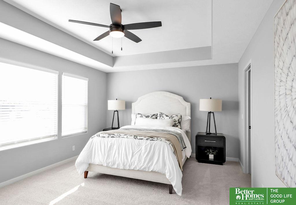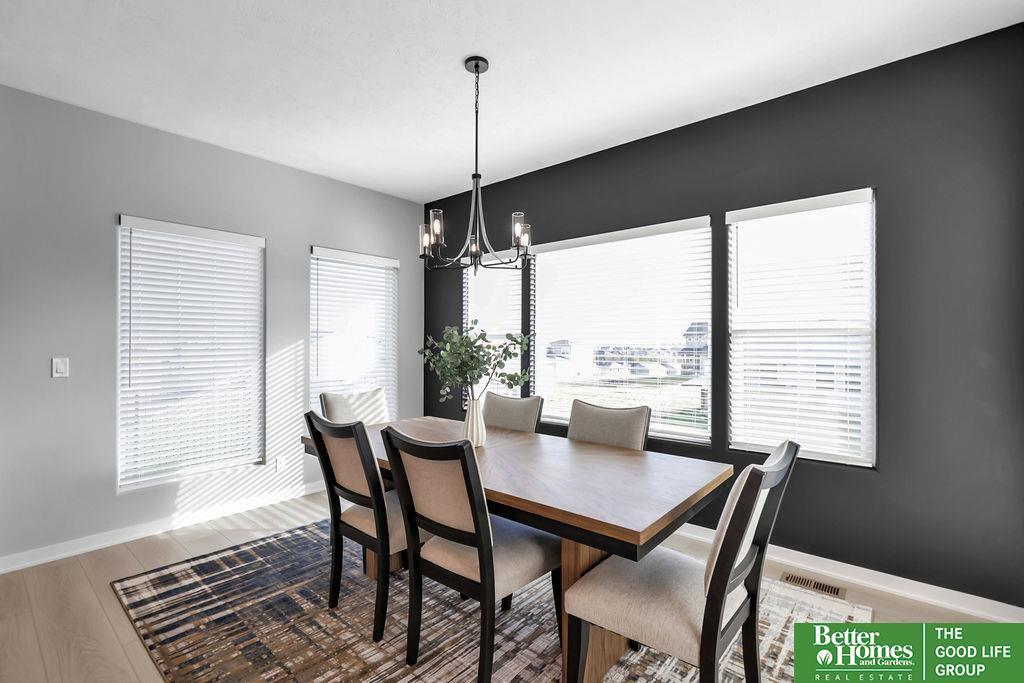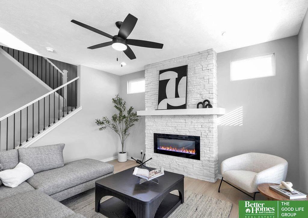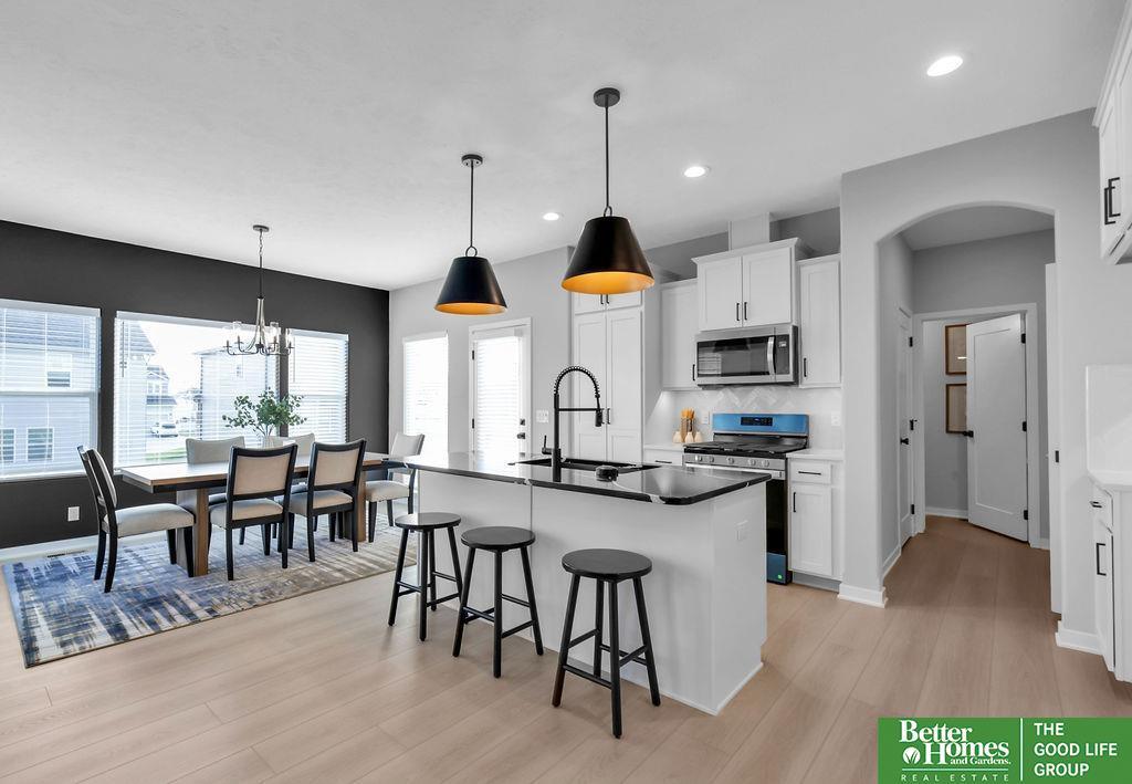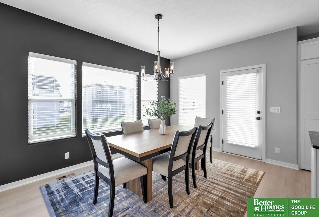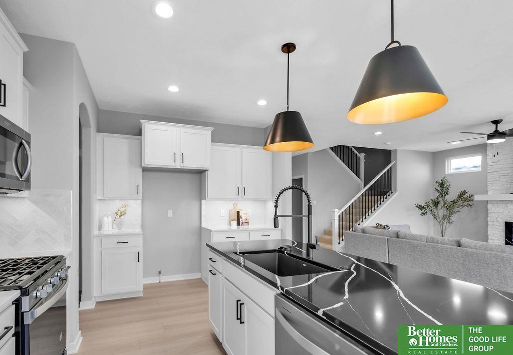 This stunning 5-bedroom, 4-bathroom Modern Prairie home blends style & functionality with thoughtful design. The open-concept layout features beautiful cabinetry with under-cabinet lighting, quartz countertops, & a large hidden walk-in pantry. The spacious kitchen includes an island with a built-in charging ring, while the dining area offers plenty of space for gathering. A cozy living room centers around a fireplace with a stone surround extending to the mantle, framed by transom windows. Luxury vinyl plank flooring flows through all high-traffic areas, complementing the open staircase. A versatile flex room is perfect for an office, playroom, or reading nook. The drop zone off the garage adds convenience with built-in shelves and a bench. Durable James Hardie siding & a sprinkler system complete the exterior. Located near top-rated schools, parks, & shopping, this home offers comfort and convenience in a prime location. (photos are of similar home-selections and finishes may vary.)