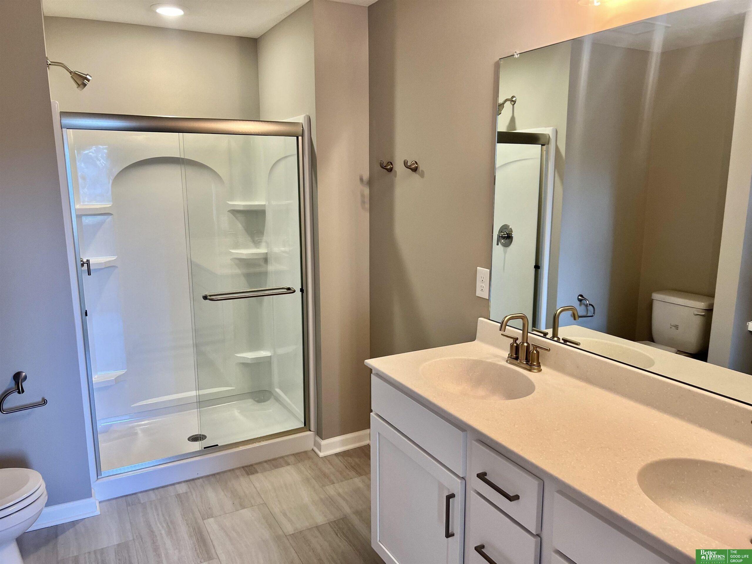 Builder added new landscaping!! This stylish 2-story walkout in the Elkhorn School District offers 4 bedrooms, 4 baths, a finished basement, and a 2-car garage. You’ll love the upscale finishes throughout—quartz countertops, LVP flooring, a designer tile backsplash, and a cozy fireplace. The main level includes a drop zone, walk-in pantry, and open-concept living, while the cedar deck offers the perfect spot to relax or entertain. Other features include: microwave vented to the exterior, trash rollout, upper laundry cabinet, electric fireplace with tile surround, ceiling fans and designer railing. Located in a sought-after neighborhood with modern style and everyday function. Schedule your tour today!